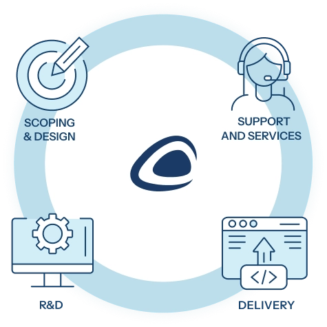 Saját fejlesztésű rendszereink és globális partnereink megoldásai lehetővé teszik, hogy a szoftverfejlesztés teljes életciklusát lefedjük – az üzleti igények felmérésétől és megvalósíthatósági elemzésétől kezdve a tervezésen és fejlesztésen át egészen a menedzselt szolgáltatások biztosításáig.